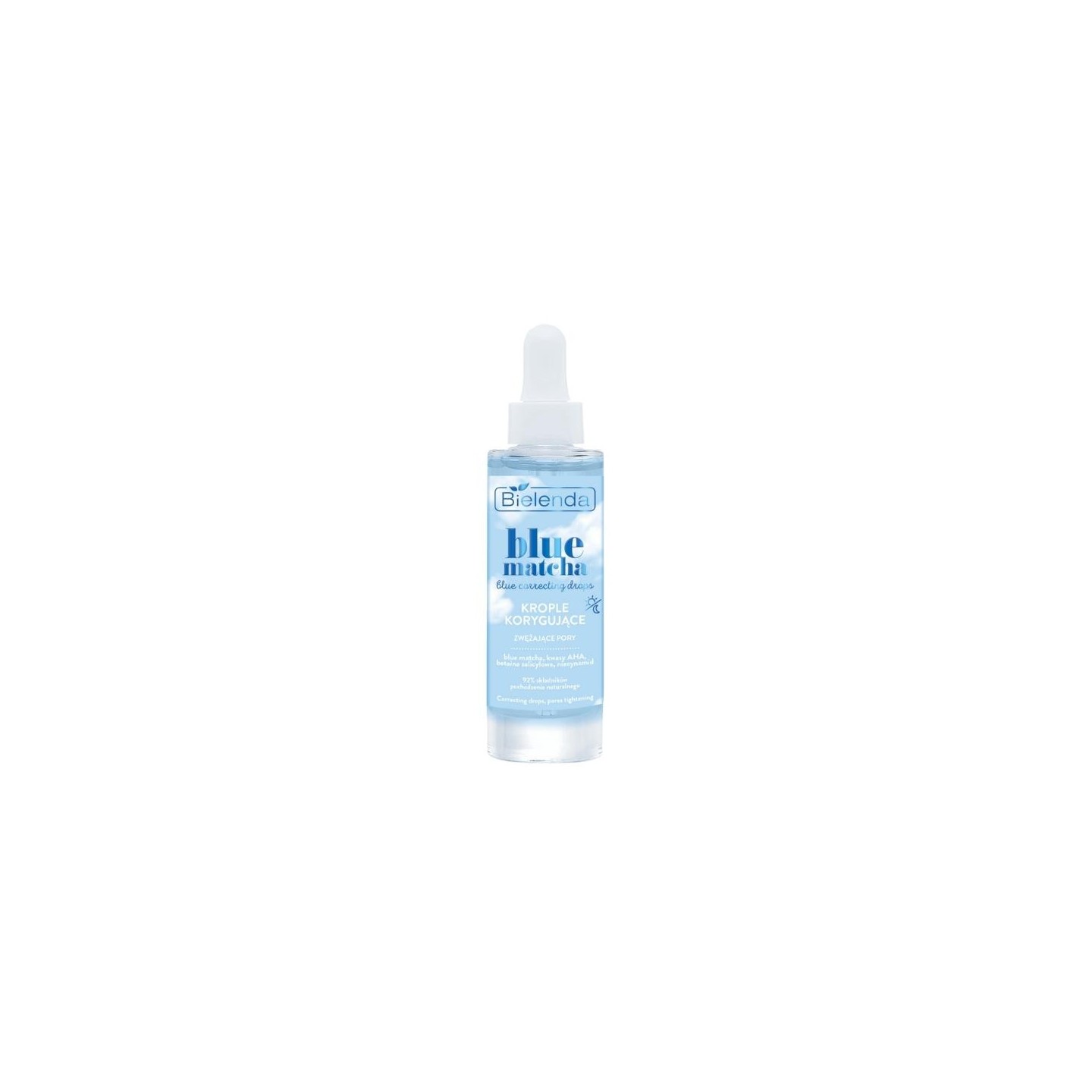 Druppels die de poriën corrigeren en verkleinen, met een lichte, veganistische formule, die zichzelf zal bewijzen in de dagelijkse verzorging van alle huidtypes, vooral die met lokale onvolkomenheden. U zult blij zijn met hun gelconsistentie en effectieve werking. Druppels maken de huid glad en verfrissen, verminderen de zichtbaarheid van poriën en onvolkomenheden, verbeteren de hydratatie, de conditie van de huid en de uitstraling ervan. Ze hebben een natuurlijke, delicate blauwe kleur, die het resultaat is van het gebruik van het blauwe matcha-ingrediënt, geven het effect van een verfriste huid, verminderen de zichtbaarheid van poriën en oneffenheden, zijn licht, belasten de huid niet
