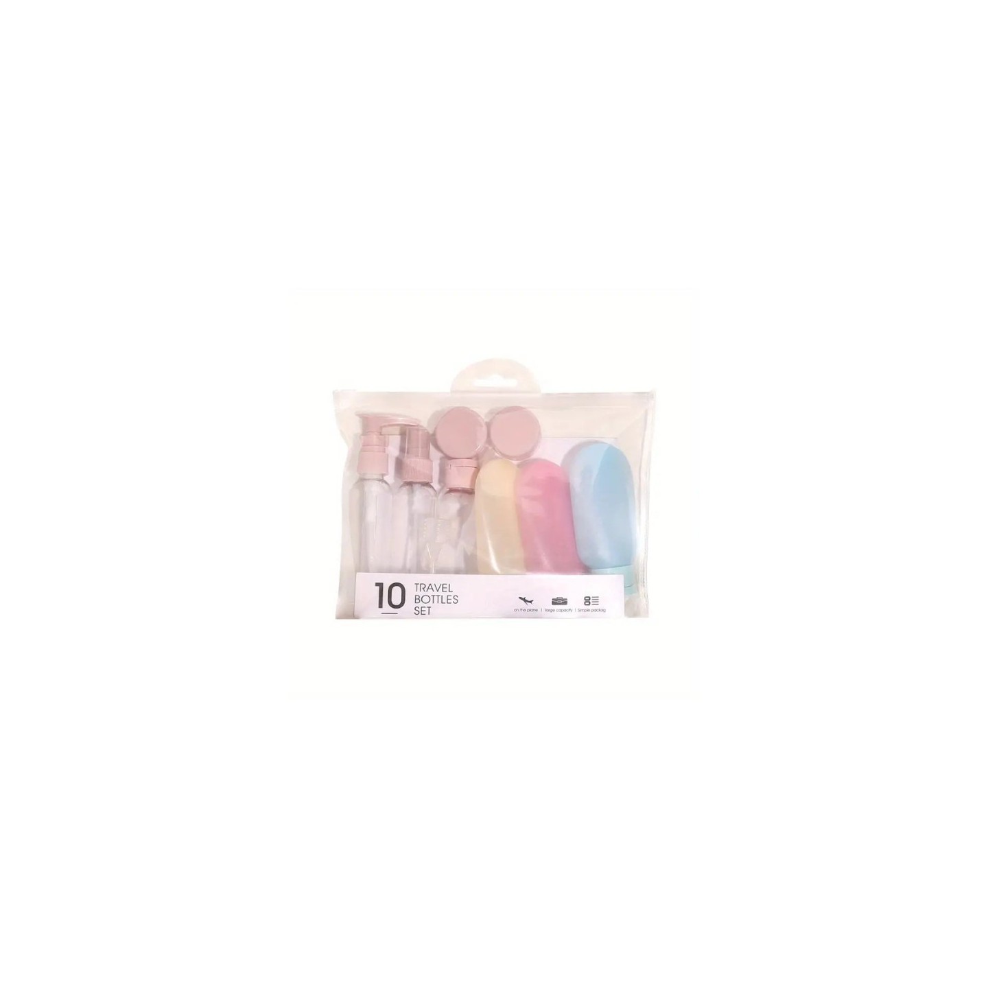 Das 10-in-1-Reisebehälter-Set ist ein praktisches Set aus Flaschen und Gläsern, mit dem Sie Ihre Lieblingskosmetik auf Reisen bequem aufbewahren können – ideal für den Transport von Flüssigkeiten, Cremes und anderen Pflegeprodukten entsprechend den Anforderungen im Handgepäck.