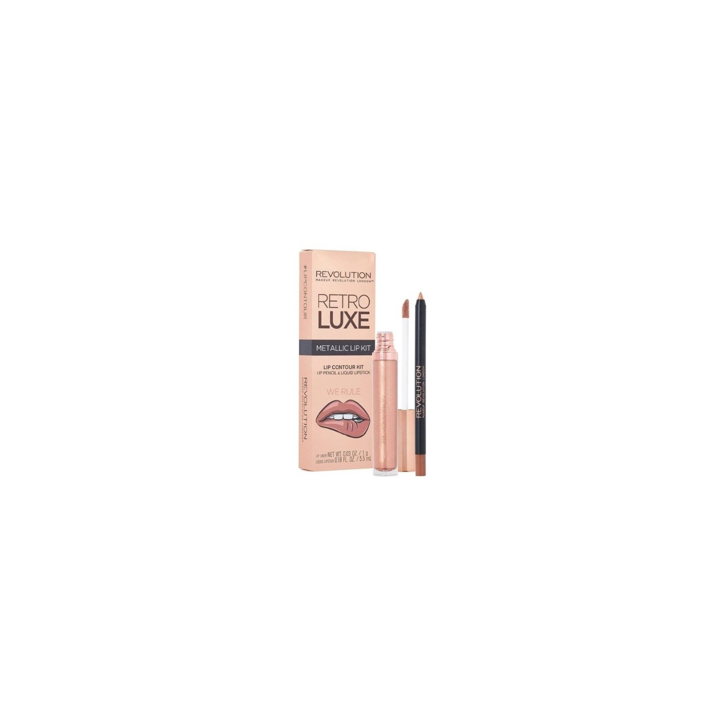 • Revolution Retro Luxe Metallic Lip Kit We Rule Lippen-Make-up-Set: Lipgloss 5 ml + Lippenstift 1 g