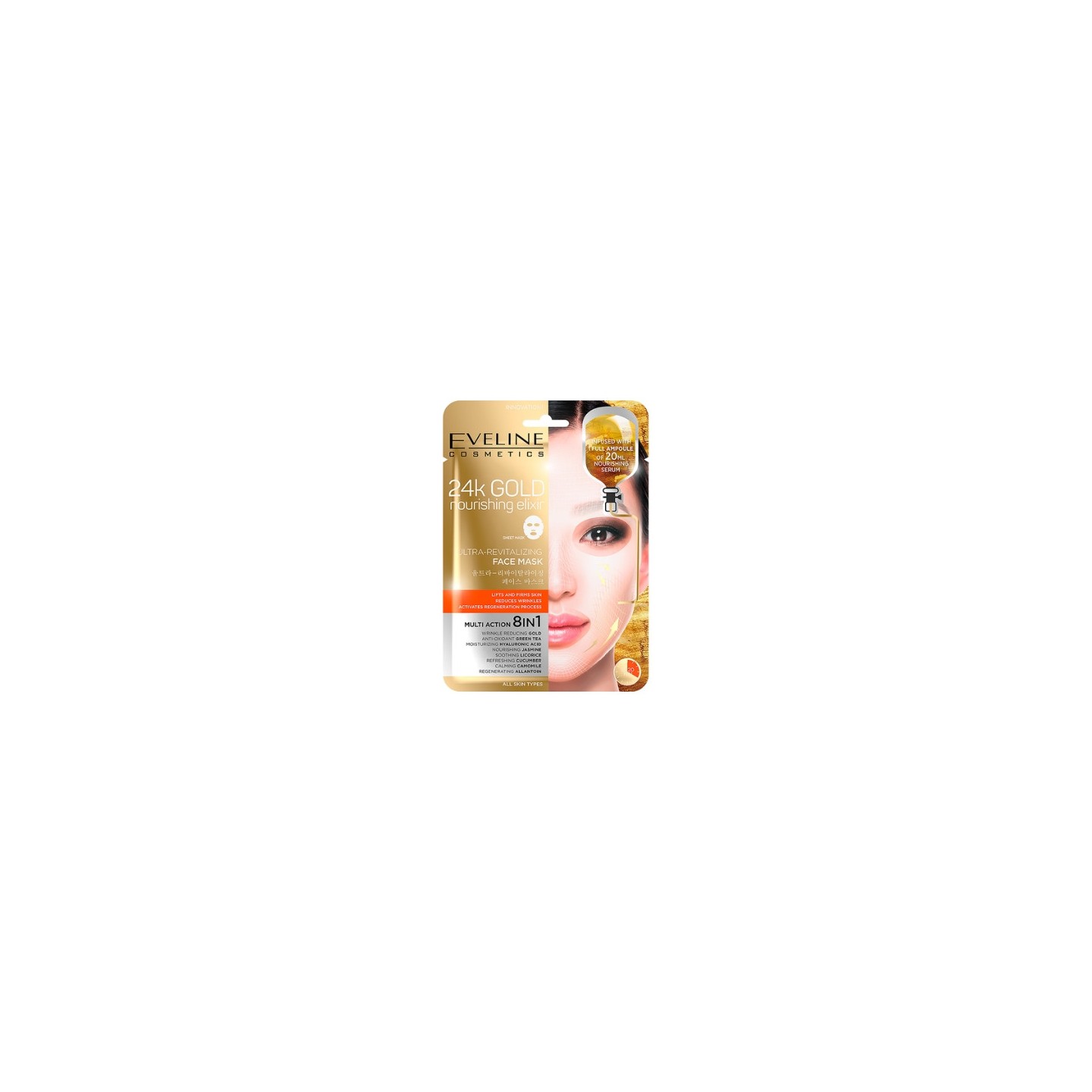 Eveline 24k Gold 8in1 ultra-revitaliserende sheet gezichtsmasker 1 stuk