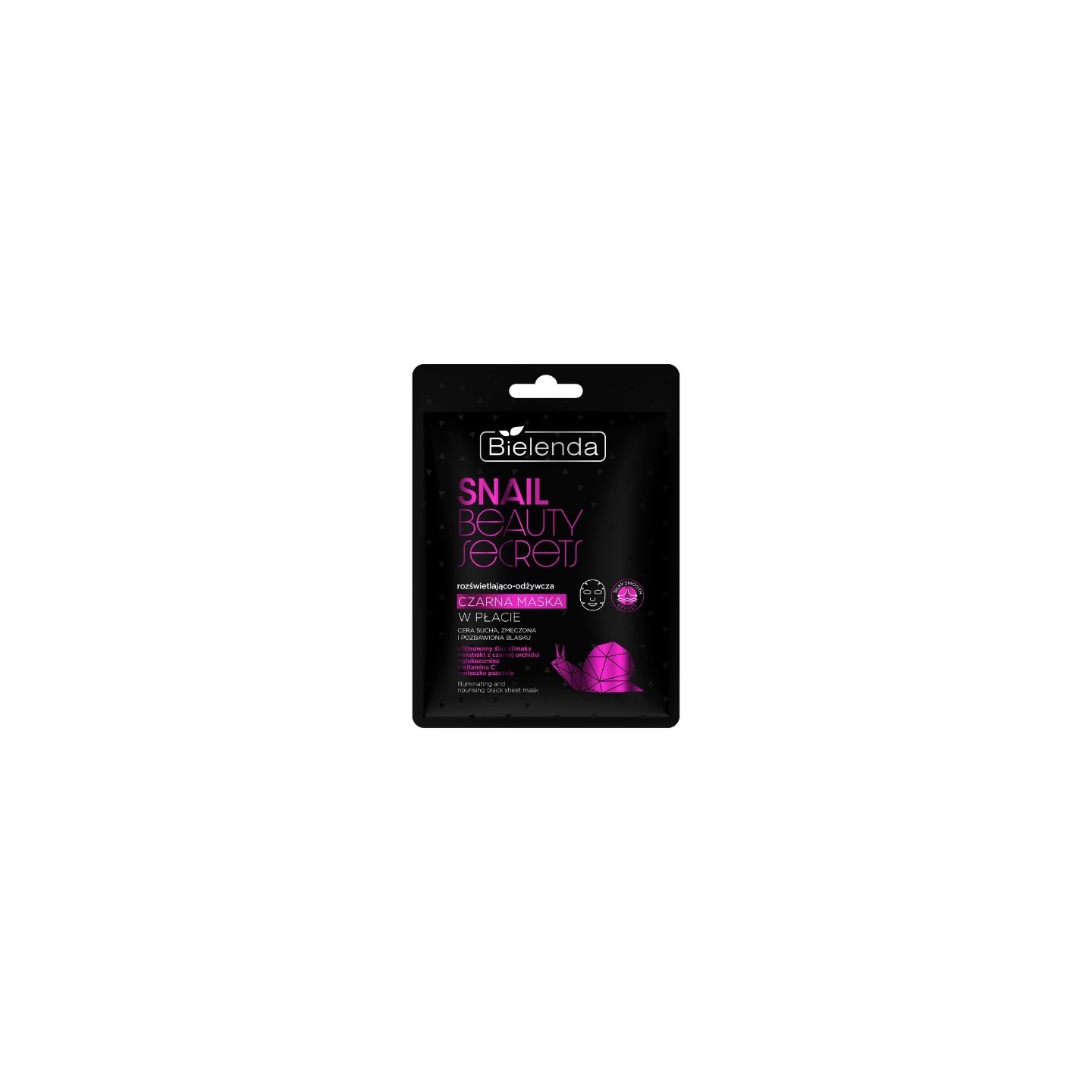 • Bielenda SNAIL BEAUTY SECRETS Aufhellende und pflegende schwarze Blattmaske mit gefiltertem Schneckenschleim, 1 Stück