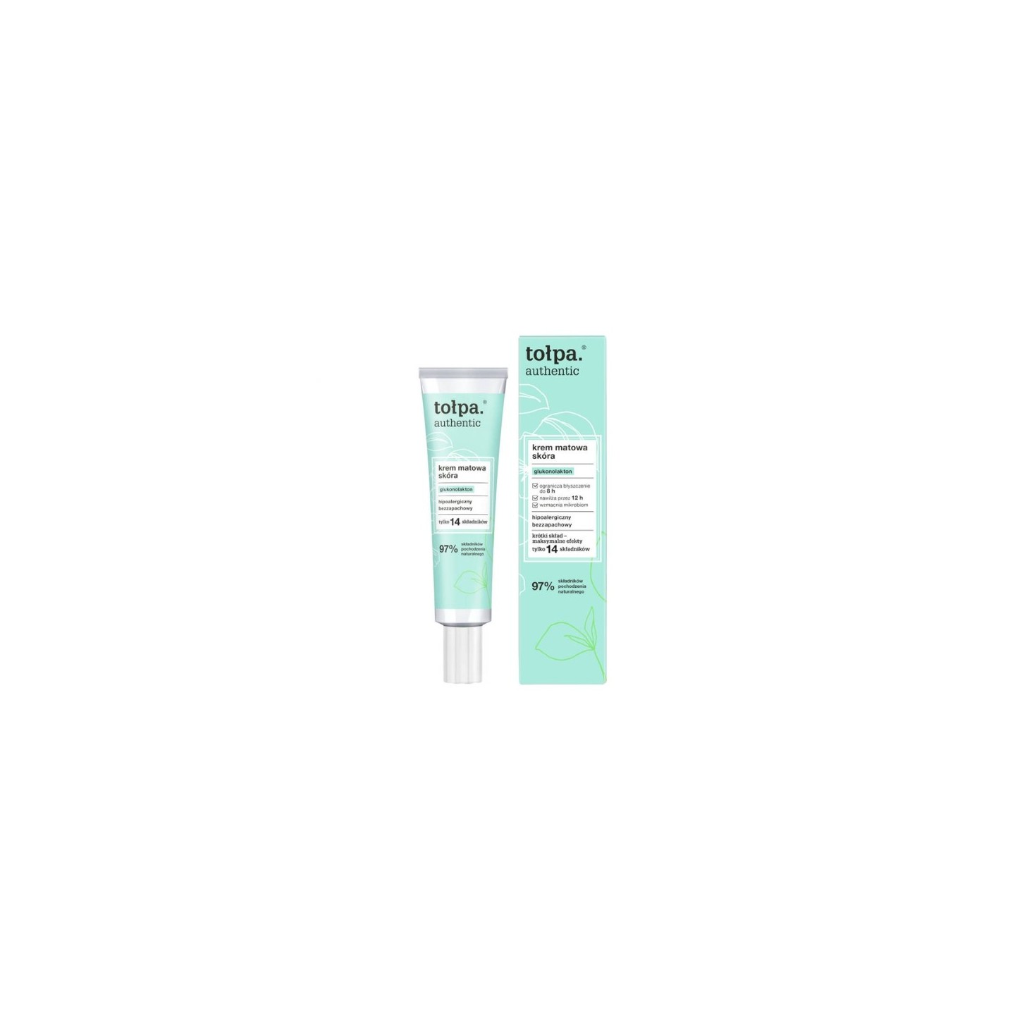 Eine leichte, mattierende Creme mit 97 7% natürlichen Inhaltsstoffen, speziell entwickelt für fettige, Mischhaut und zu Glanz neigende Haut. Sie sorgt für ein optimales Gleichgewicht zwischen Mattierung und Feuchtigkeitspflege und verleiht der Haut den ganzen Tag über ein frisches, glattes und gesundes Aussehen. Die Formel mit Gluconolacton, Tapiokastärke und Tołpa®-Torfextrakt reduziert die Talgproduktion, peelt sanft und verfeinert das Hautbild. Vitamin E bietet antioxidativen Schutz und stärkt die Hautbarriere. Ideal als Make-up-Grundlage – sie beschwert die Haut nicht und verstopft die Poren nicht.
