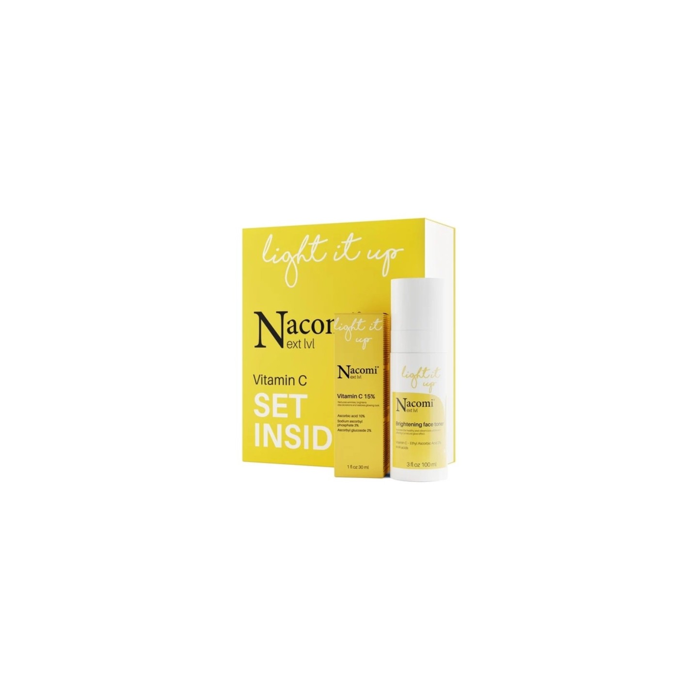 Coffret cadeau éclaircissant à Vitamin C Nacomi Next Level Lotion tonique éclaircissante au lait 100 ml + Sérum à la vitamine C 15 % 30 ml