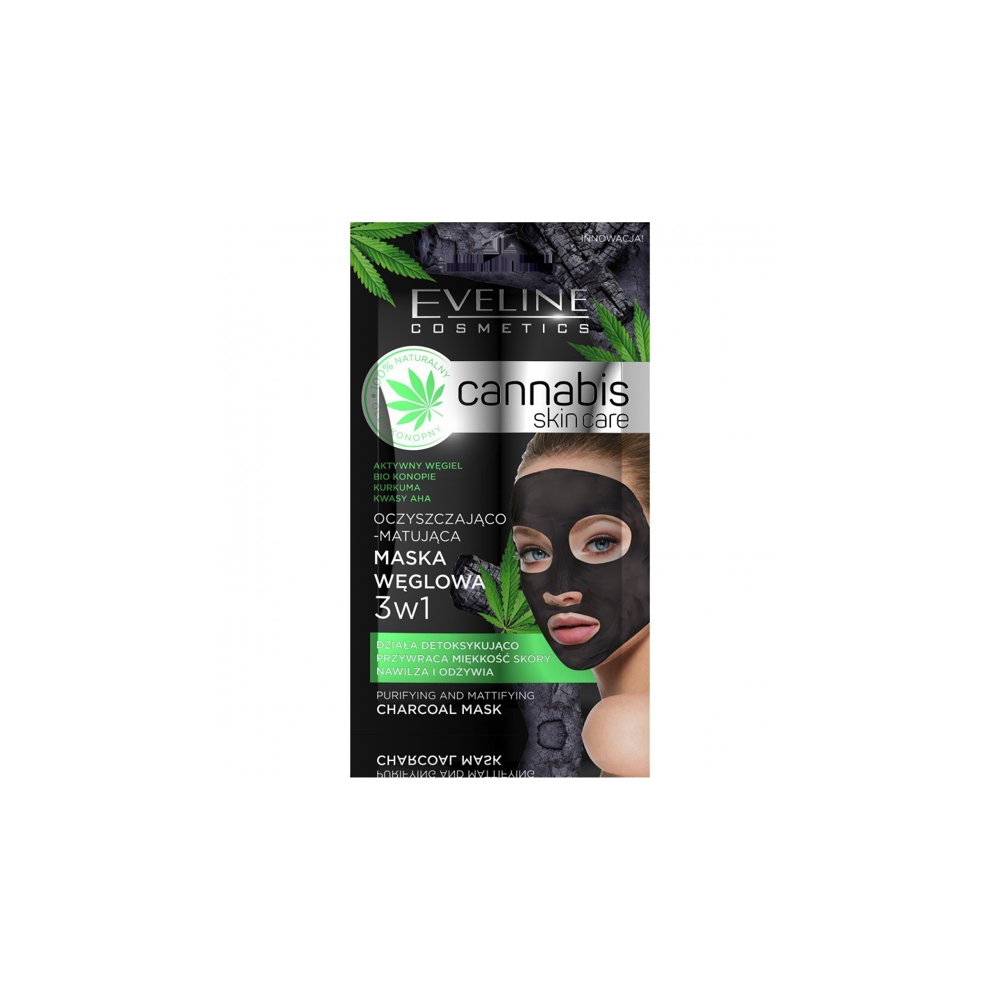 • Eveline Cannabis 3in1 Charcoal Cleansing and Mattifying Face Mask 7 ml