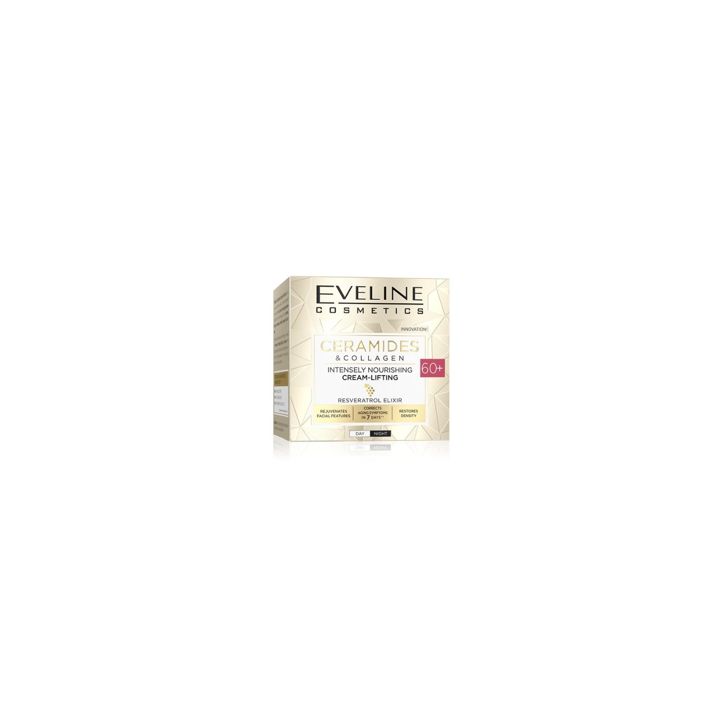 Intensive Nourishing Lifting 60+ Cream is een revolutionaire formule op basis van maar liefst drie biocompatibele ceramiden, die de symptomen van huidveroudering na de leeftijd van 60 jaar in slechts 7 dagen corrigeert. Een zorgvuldig geselecteerde samenstelling van ingrediënten, verrijkt met een kostbaar elixer op basis van resveratrol en collageen, brengt voedingsstoffen onmiddellijk diep in de opperhuid. De crème versterkt en herstelt de verzwakte, dunne huid, waardoor het mooie uiterlijk en de goede conditie worden hersteld.