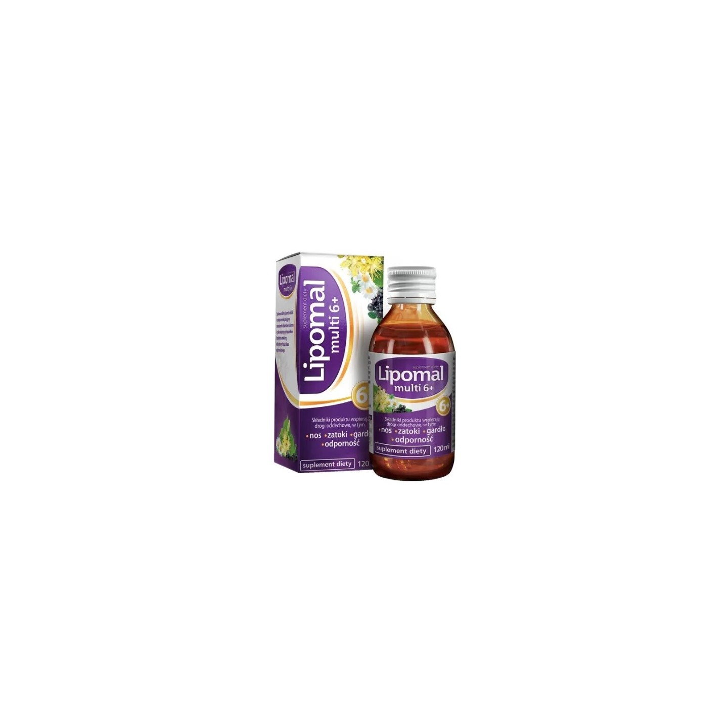 Aflofarm Lipomal Multi 6+ is een vloeibaar voedingssupplement, speciaal ontwikkeld voor kinderen vanaf 6 jaar en volwassenen. Het bevat een mix van natuurlijke plantenextracten (linde, vlierbes, kamille, tijm en heemst) en zink – ingrediënten die de goede werking van de luchtwegen, keel, sinussen, bronchiën en het immuunsysteem ondersteunen.