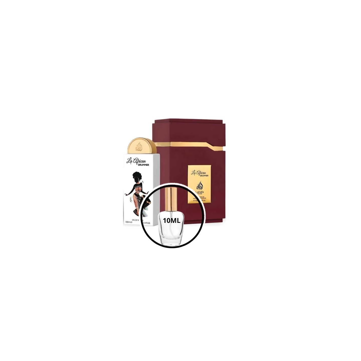 10 ml decant Lattafa La African Drummer – een oosters-bloemige, sensuele geur voor vrouwen, die de frisheid van citrus combineert met romige vanille en elegante bloemen