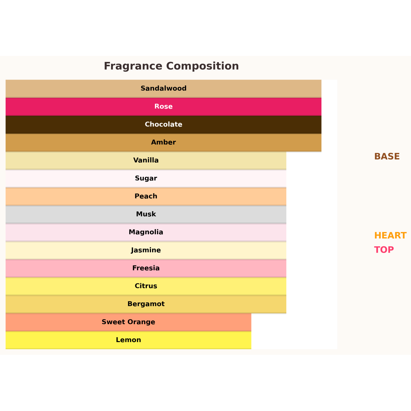 ✔ Hart: roos, magnolia, jasmijn, zoete sinaasappel, freesia