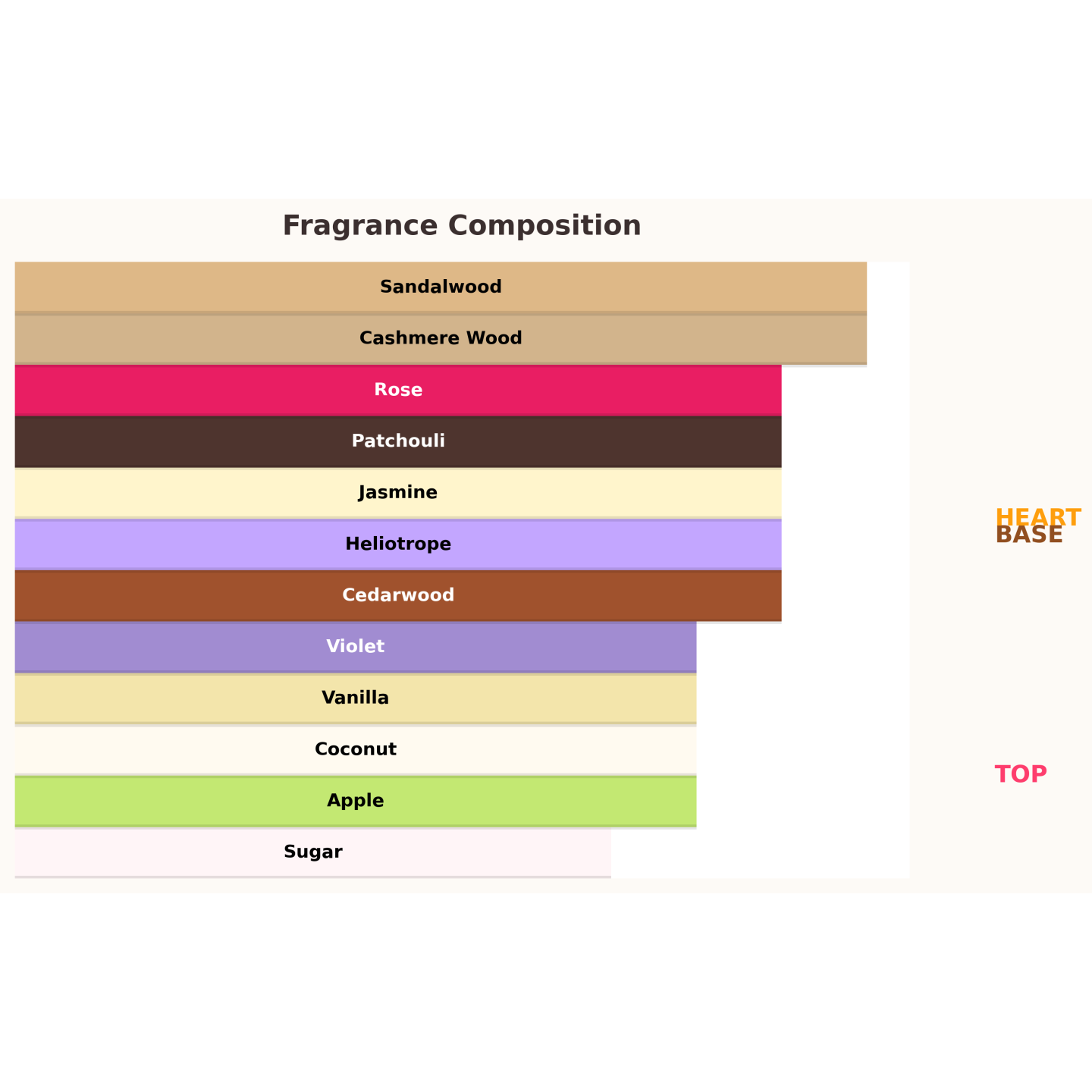 ✔ Hart: heliotroop, viooltje, jasmijn, roos