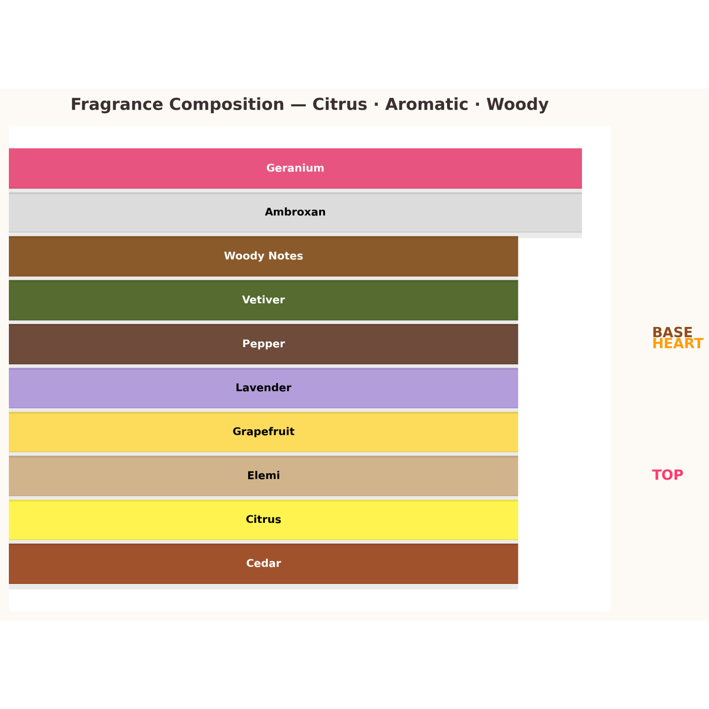 ✔ Hartnoten: geranium, lavendel, elemi, peper