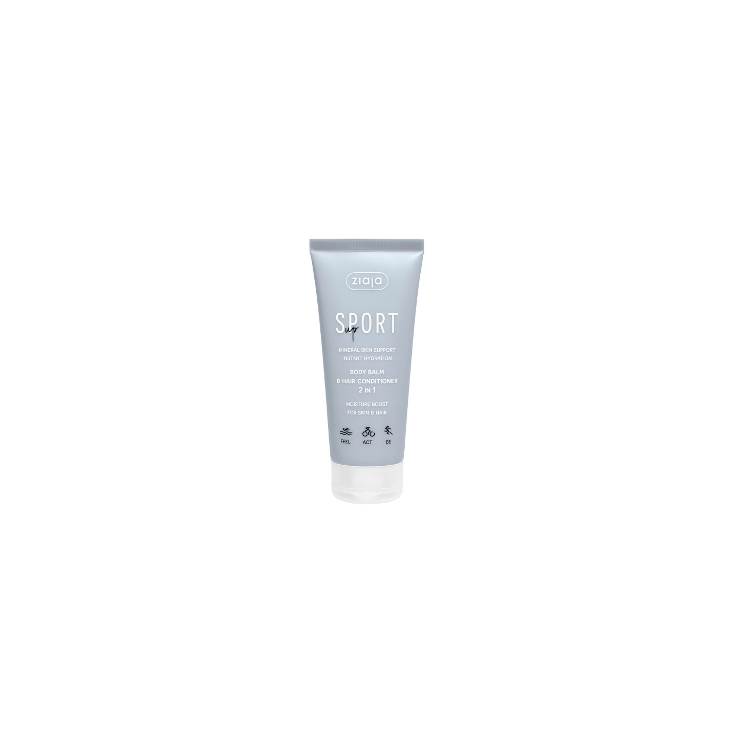 Ziaja Sport Up 2-in-1 is een functioneel dagelijks verzorgingsproduct – een hydraterende bodylotion en verzorgende haarconditioner in één. Gebaseerd op een formule die NMF (Natural Moisturizing Factor) ondersteunt, hydrateert het product de huid en het haar direct, zorgt het voor zachtheid en een gezonde uitstraling – zonder ze te verzwaren. Ideaal voor actieve mensen die minimale huidverzorging waarderen. Veganistisch en biologisch afbreekbaar, conform de OESO-richtlijnen.
