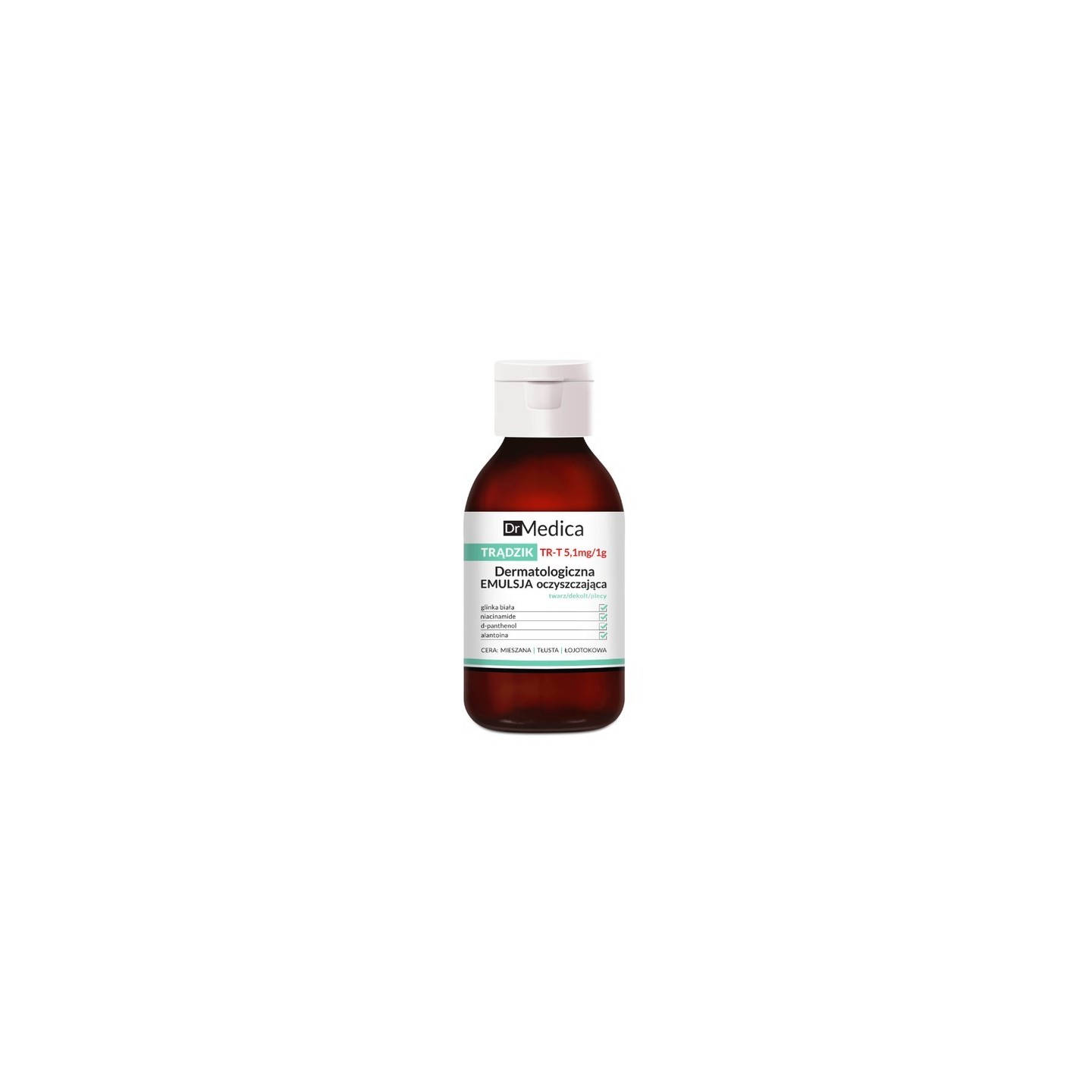 Дерматологічна очищаюча емульсія містить спеціально розроблену формулу TR-T 5 мг/1г, що складається з сильних активних речовин, які концентровано впливають безпосередньо на ураження акне.