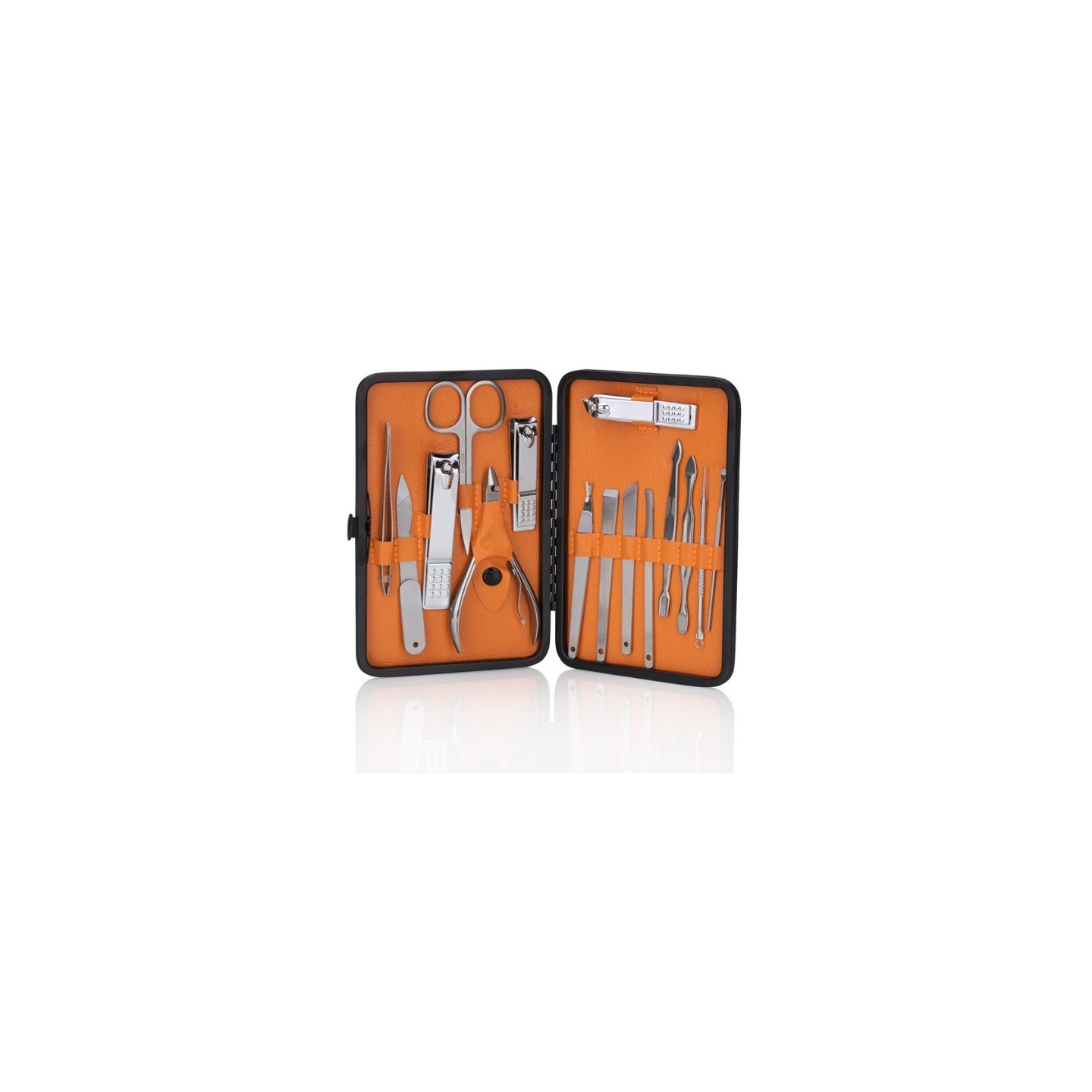 Набір з 15 косметичних аксесуарів для manicure , pedicure та догляду за обличчям в чорно-коричневому футлярі