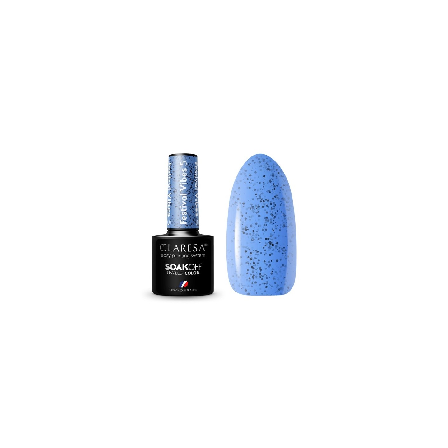 Синій відтінок Festival Vibes 5 сповнений привабливих чорних частинок і відчуває себе справжньою королевою трендів!
