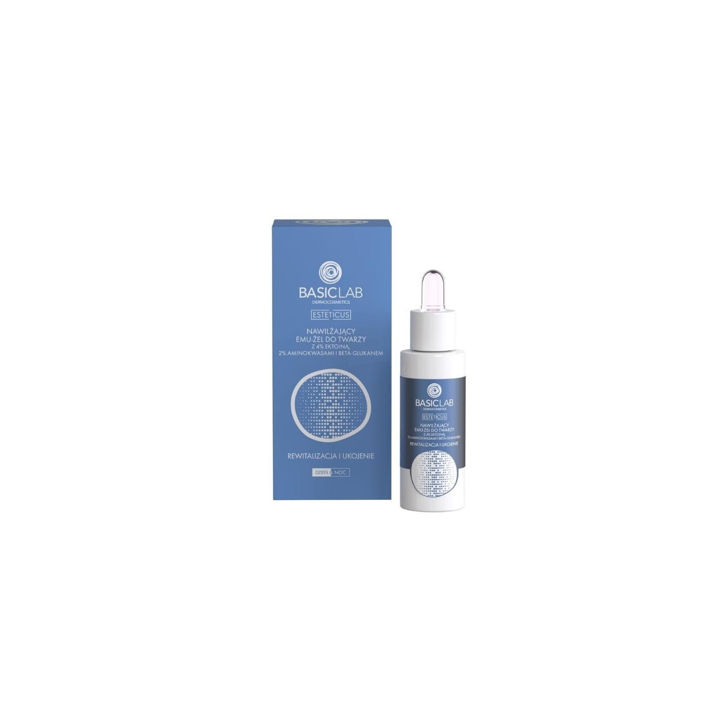 BasicLab Esteticus зволожуючий ему-гель для обличчя з 4% ектоїну, амінокислотами та бета-глюканом ревіталізація та заспокоєння