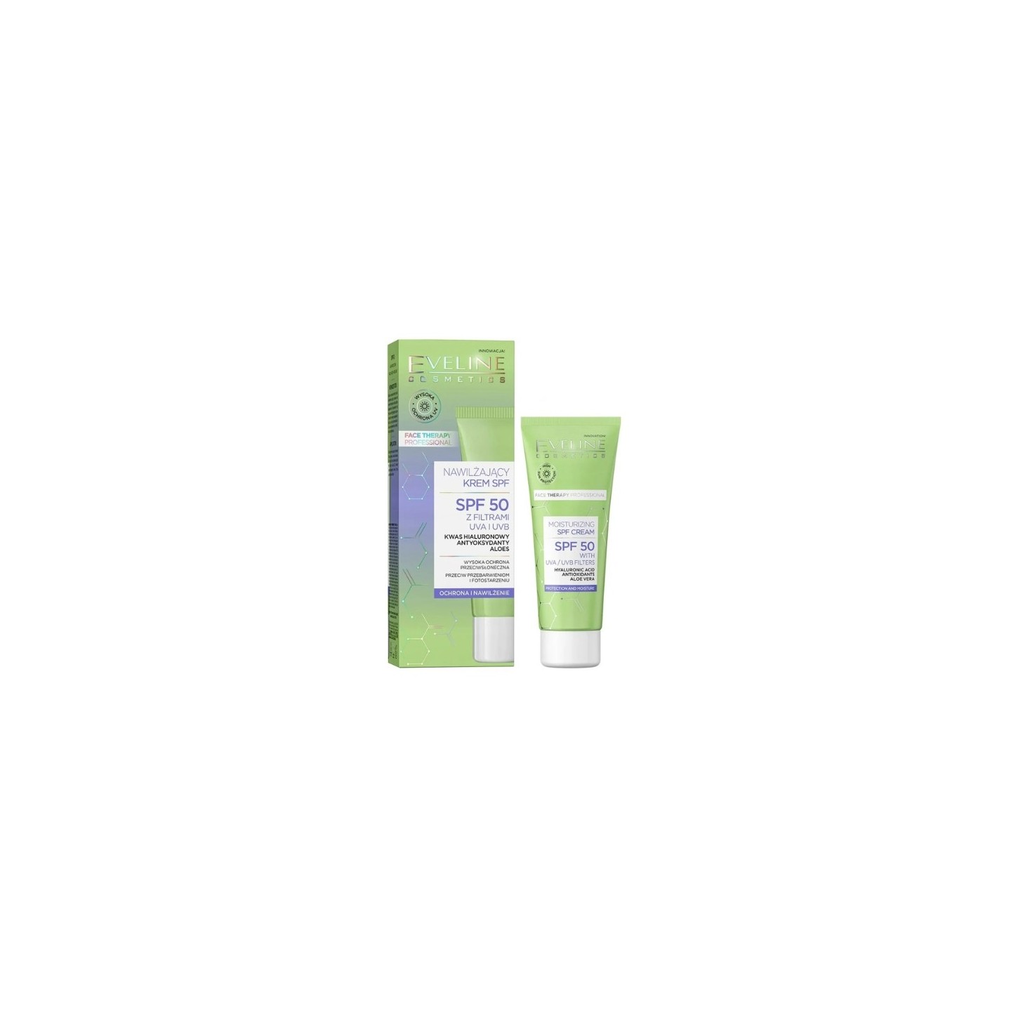 • Зволожуючий крем для обличчя Eveline з фільтром SPF50 30 мл