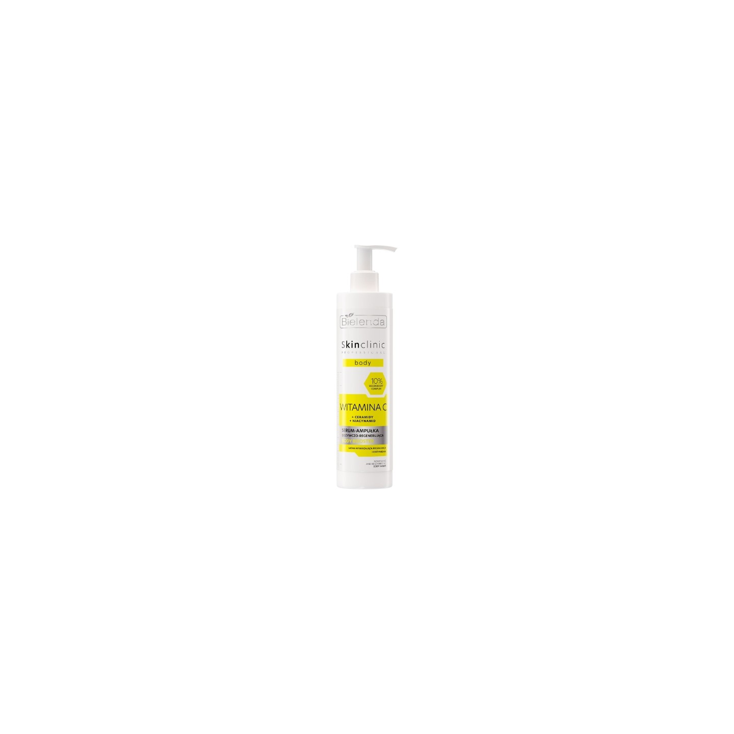 Bielenda Skin Clinic Professional живильна та регенеруюча ампульна сироватка Body з вітаміном С від Bielenda Skin Clinic – це інноваційний косметичний засіб, натхненний професійними салонними процедурами. Він був створений для шкіри, яка потребує інтенсивної регенерації, живлення та відновлення сяйва. Його формула, заснована на 10% комплексі Regenboost, поєднує дію трьох ключових активних інгредієнтів – вітаміну С, керамідів та ніацинаміду. Ця сироватка забезпечує багаторівневі переваги: вона освітлює шкіру, покращує її стан та сприяє відновленню гідроліпідного бар'єру. Легка, комфортна консистенція швидко si та не залишає жирної плівки, що робить її ідеальною для щоденного догляду ego , особливо після купання або пілінгу.