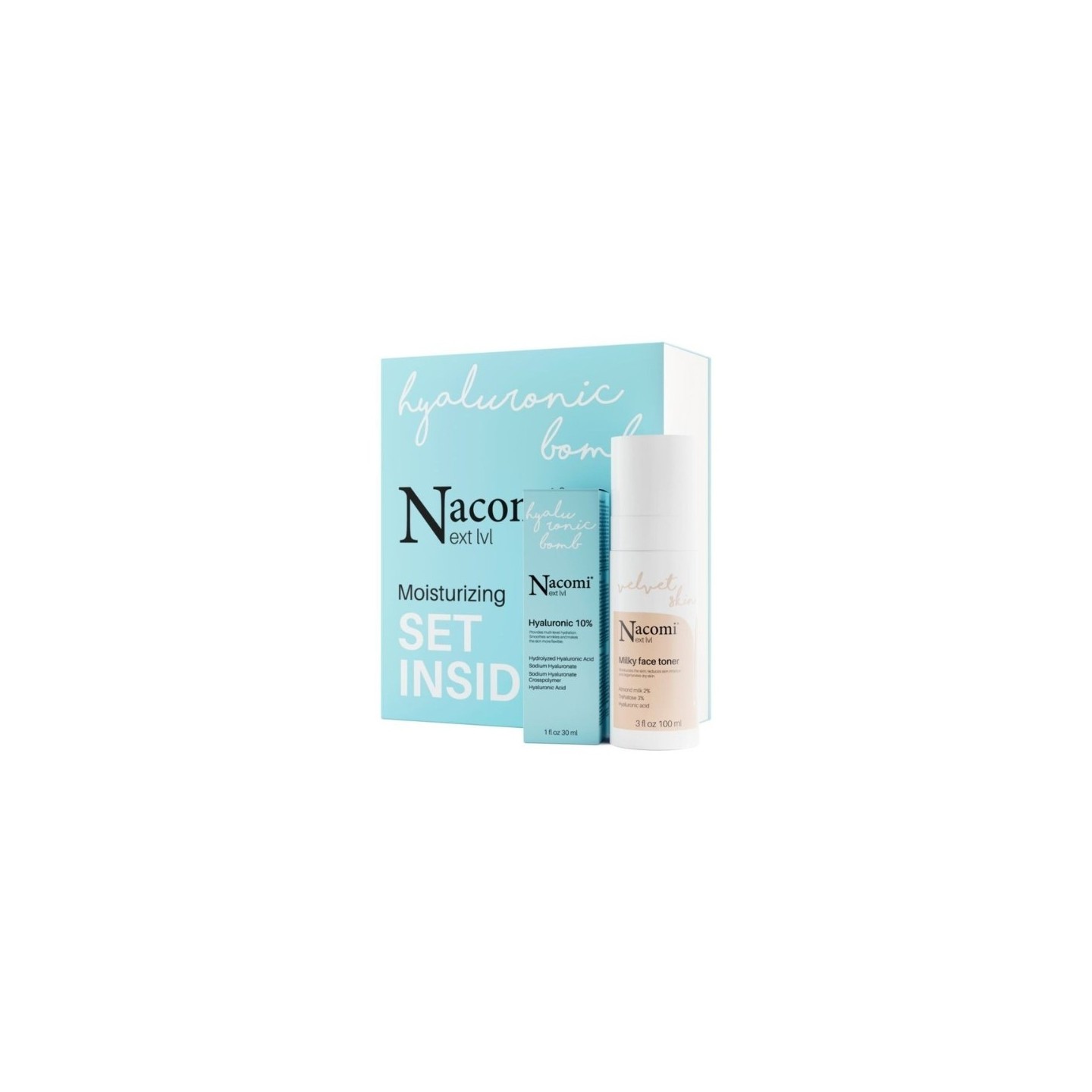 Nacomi Next Level Moisturizing Gift Set Moisturizing Milk Tonic 100 мл + Serum з гіалуроновою кислотою 10% 30 мл(31-05-2026)