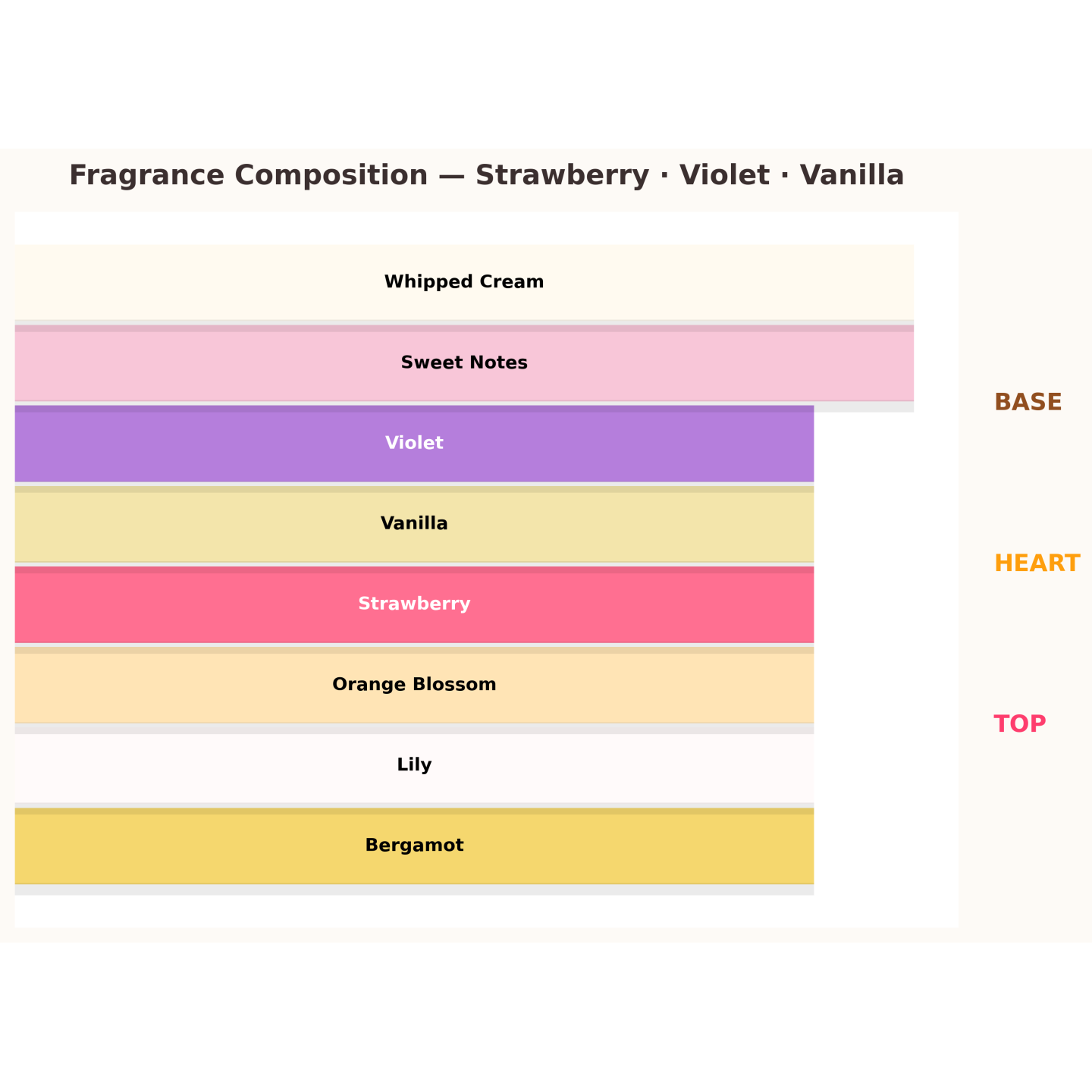 ✔ Серце: солодкі ноти, фіалка, лілія, квітка апельсина