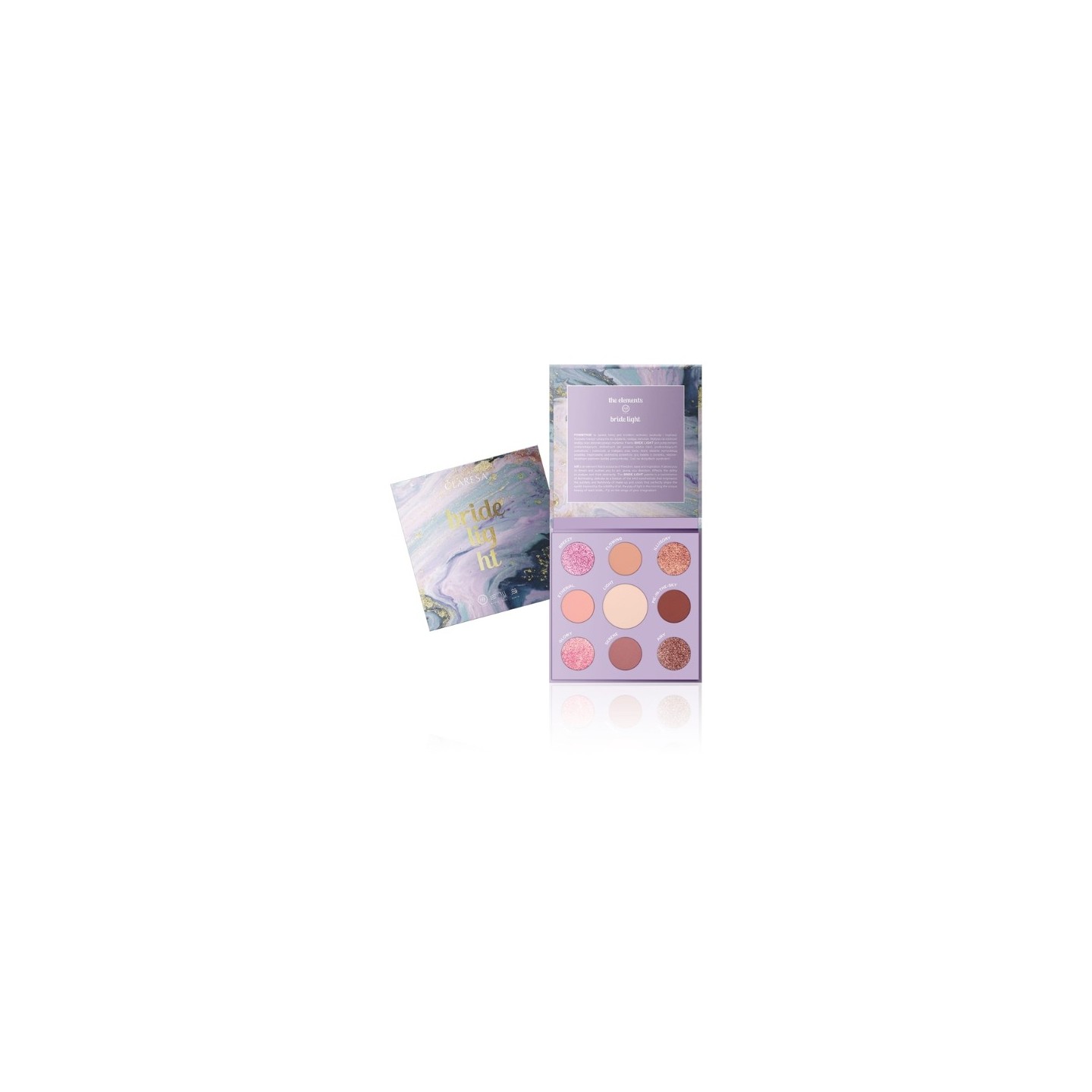 Палітра BRIDE LIGHT, натхненна швидкоплинністю повітря та грою ранкового світла, дозволить піднятися над повсякденністю. Комбінація дев'яти тіней з різними фінішами і шовковистою формулою дозволяє створити легкий, як вітерець, макіяж, підкреслюючи витонченість і жіночність. Кольори палітри BRIDE LIGHT ідеально формують повіку, створюючи незабутні образи. Відкрийте для себе силу натхнення та літайте на крилах своєї уяви з палітрою BRIDE LIGHT!