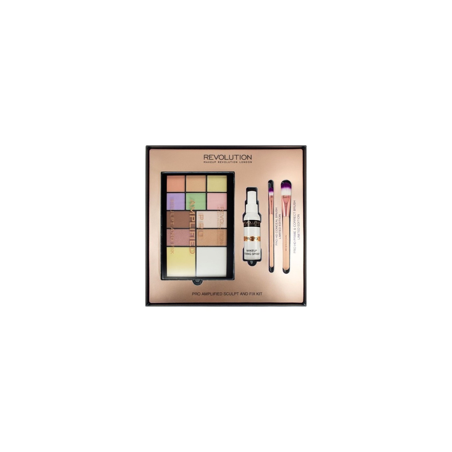 PRO AMPLIFIED SCULPT AND FIX KIT - це повний набір косметики, що включає палетку для контурування, дві кисті та спрей для фіксації макіяжу. Кисті виготовлені з високоякісної двоколірної синтетичної щетини, закріпленої на елегантних наконечниках з рожевого золота і ніжно-рожевих ручках. Цей набір ідеально підходить як для професійних салонів краси, так і для домашнього використання, виправдовуючи очікування навіть найвибагливіших людей. Це також ідеальний подарунок для коханої людини, яка цінує акуратність у макіяжі.
