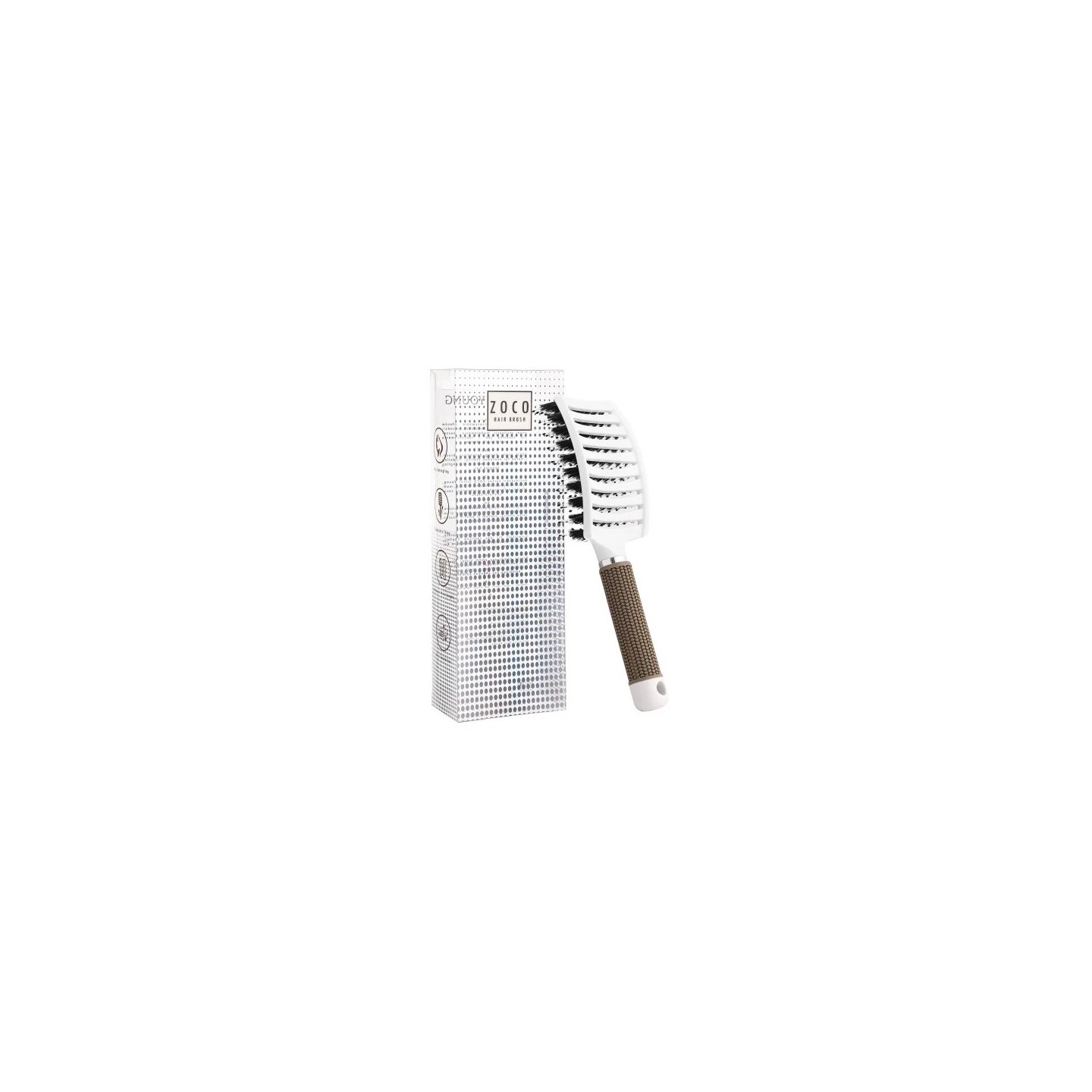Гребінець - практичний інструмент для щоденного розчісування, укладання та сушіння. Завдяки поєднанню натуральної щетини кабана та антистатичних нейлонових шпильок із кульковим наконечником щітка ефективно розплутує як тонке, так і густе волосся, не смикаючи та не ламаючи. Натуральна щетина сприяє рівномірному розподілу шкірного сала, надаючи волоссю здоровий блиск, а нейлонові шпильки ніжно масажують шкіру голови. Вентильований корпус полегшує потік повітря під час сушіння, скорочуючи час на укладку. Ергономічна ручка забезпечує зручне і надійне захоплення, що підвищує зручність під час щоденного використання. Щітка si для вологого і сухого волосся. Його сучасний вигляд робить його естетичним доповненням до вашої ванної кімнати або ідеальним подарунком.