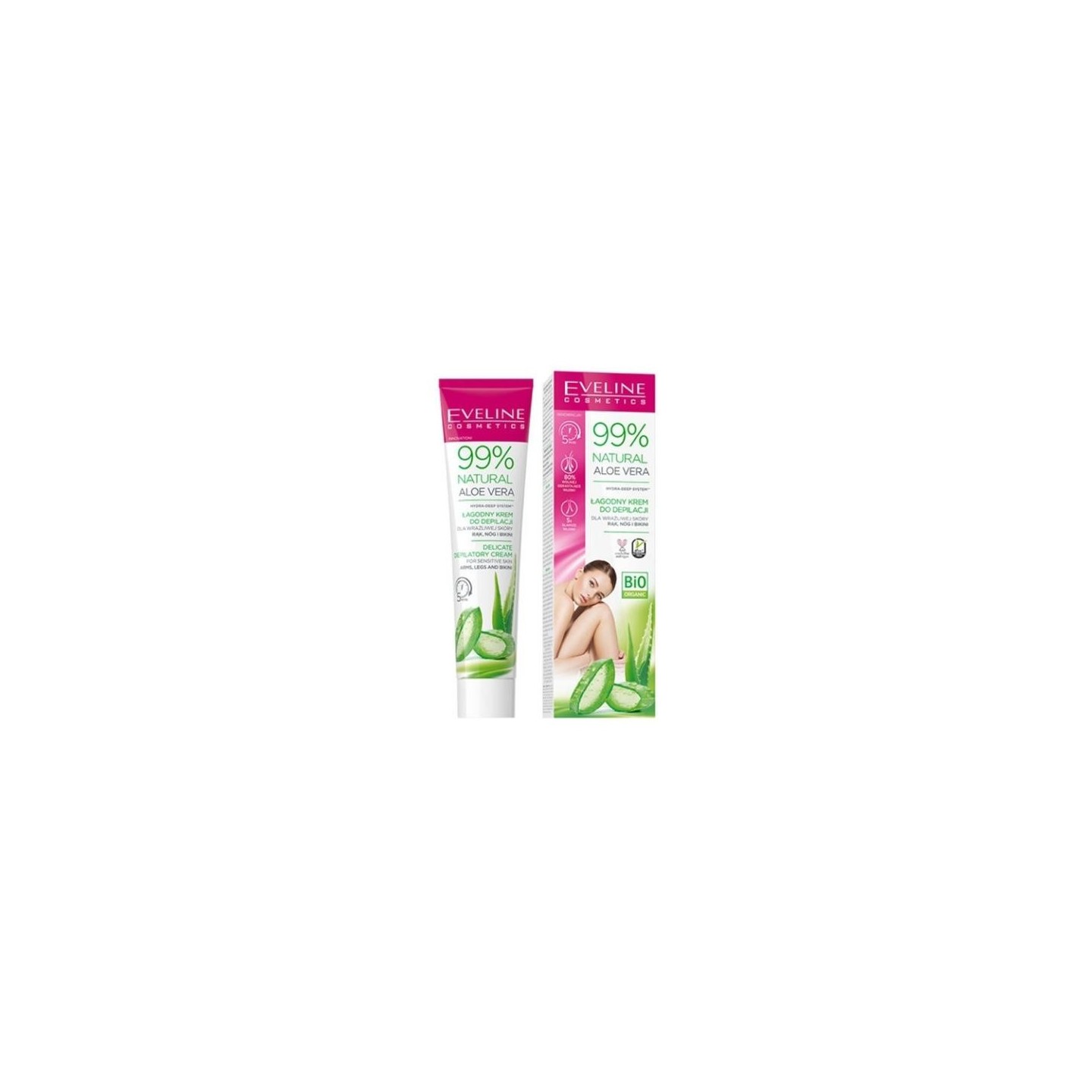 Eveline 99% Natural Aloe Vera адаптований до спеціальних потреб чутлива шкіра . Косметика зараз діє швидко Через 5 хв ви зможете легко видалити небажане волосся з рук, ніг і зони бікіні. Вершки на 80% затримує процес відростання волосся , завдяки чому ви зможете насолоджуватися бездоганним волоссям гладка шкіра до 7 днів !