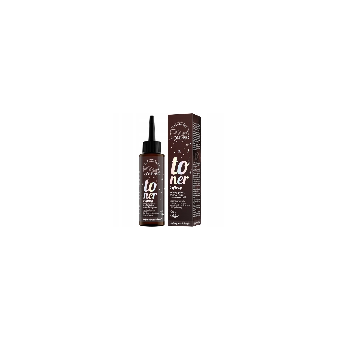 Тонік для коричневого волосся – насичений коричневий колір шоколадного трюфеля, з олією бразильського горіха та екстрактом кропиви, без аміаку та перекису водню, колір та блиск до 8 мийок