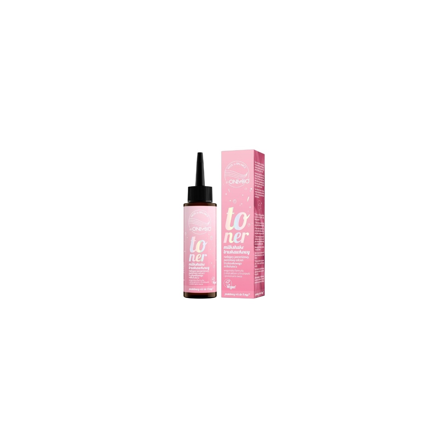 Тонік OnlyBio Hair in Balance Strawberry Milkshake Hair Toner — це косметичний засіб, який надає вашому волоссю красивого полунично-рожевого відтінку, одночасно інтенсивно доглядаючи за ним. Завдяки делікатній формулі без аміаку та перекису водню, тонік дбайливо впливає на волосся, а його відтінок si до 8 миття, залежно від структури та стану волосся. Засіб можна використовувати як на фарбованому, так і на натуральному волоссі. Він ідеально підходить, якщо ви хочете додати волоссю свіжості, блиску і трохи кольору, який привертає увагу.
